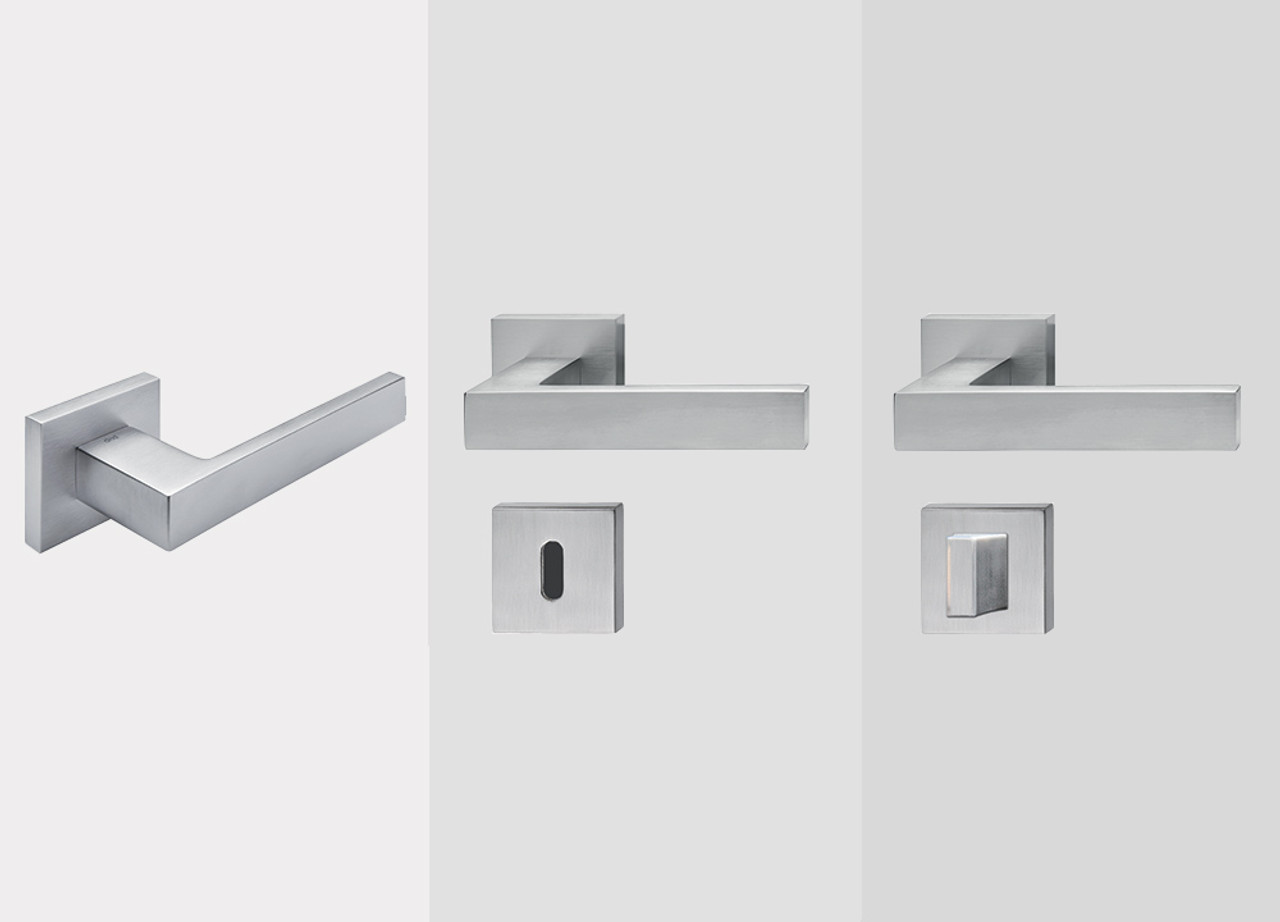 The contemporary Cassiopea Door Handle range for Syntesis Flush Hinged Timber Doors comprises of simple handle design with a satin chrome finish.