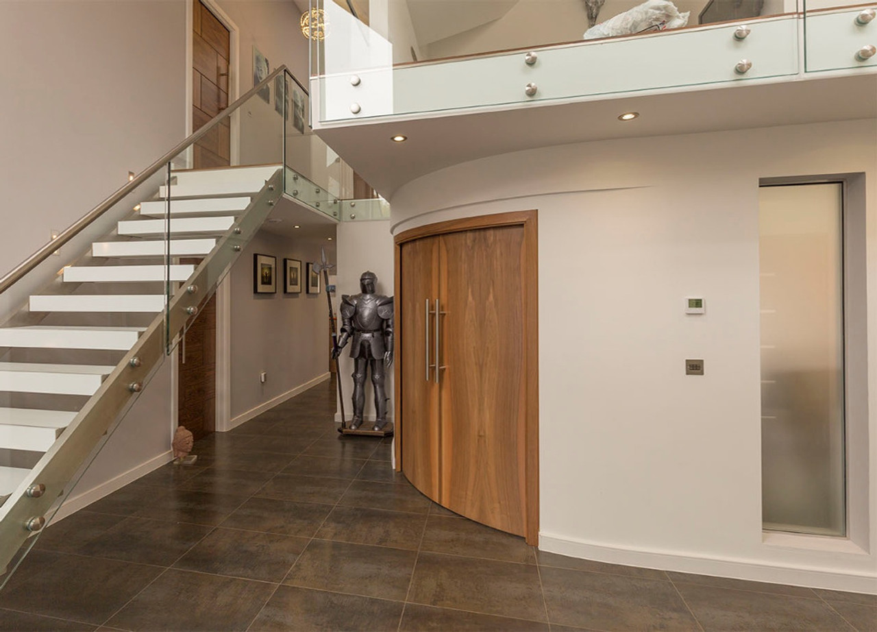 Make a statement with a curved double pocket door.