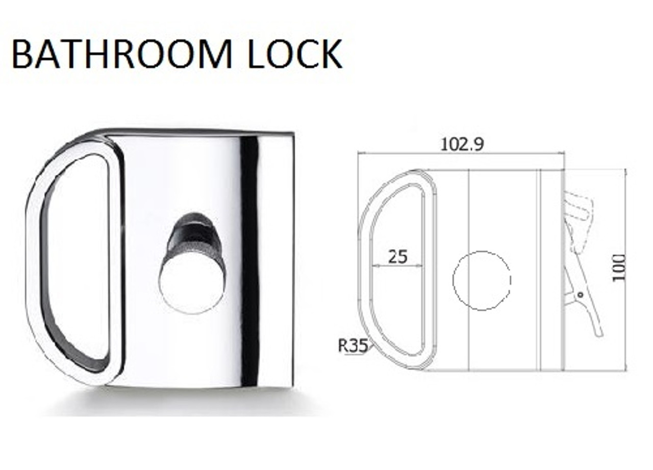 Glass Door Bathroom Lock with incorporated handle (V-604)