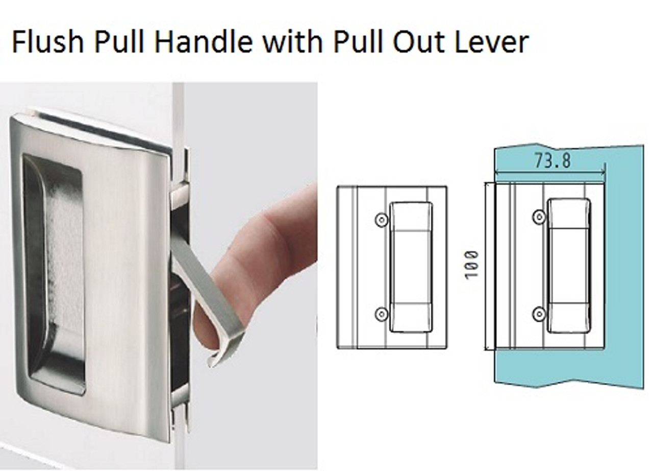 Flush Pull Handle with Pull Out Lever for Glass Doors