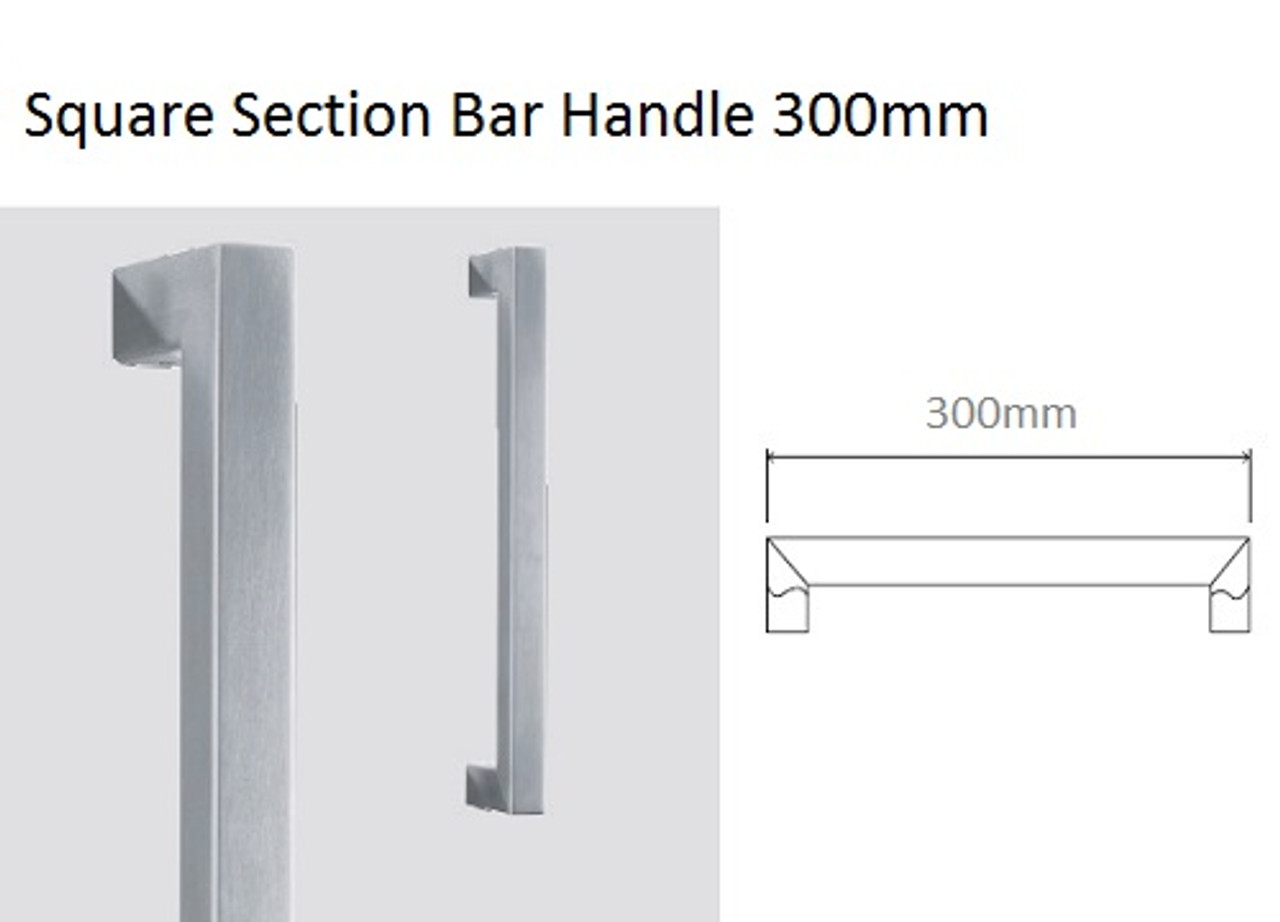 Square Section Bar Handle 300mm (Square 41 300) for Glass Doors