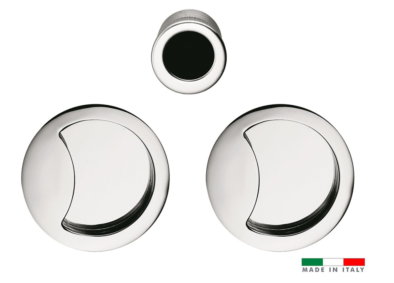 Made in Italy, these contemporary flush pulls provide the perfect finishing touch for your pocket door and come in a variety of finishes. The set includes two handles plus a handy finger pull for use in the leading edge of door.