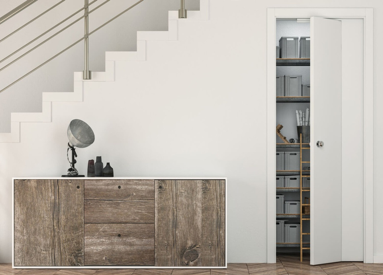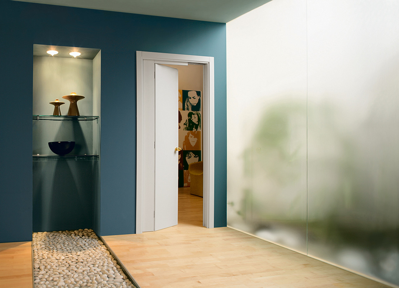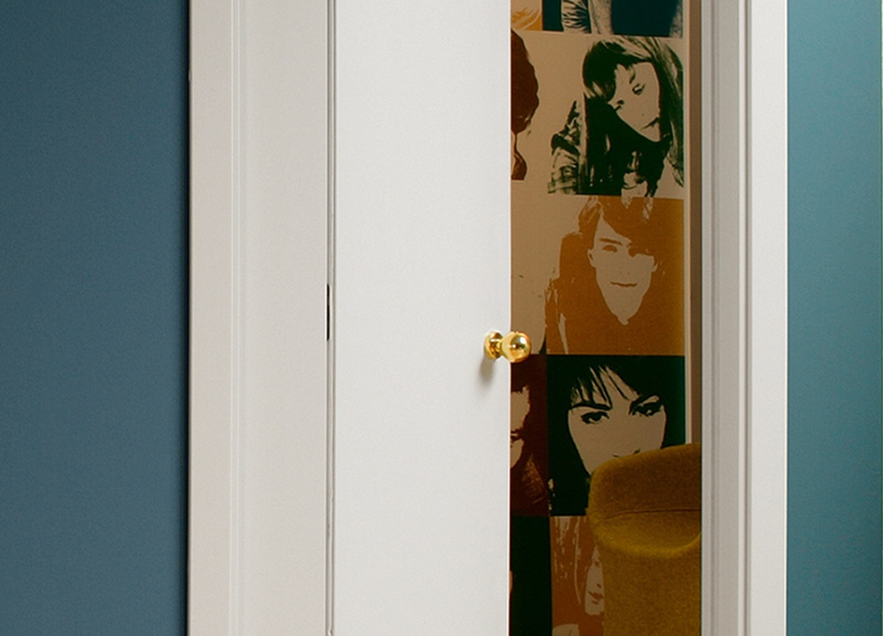Half slide and half hinged, the Novanta has a single door, part of which slides back into a pocket and part of which opens as a hinged door. Ideal for a cupboard under the stairs, a small utility or toilet where there’s not enough wall space for a standard sized pocket.