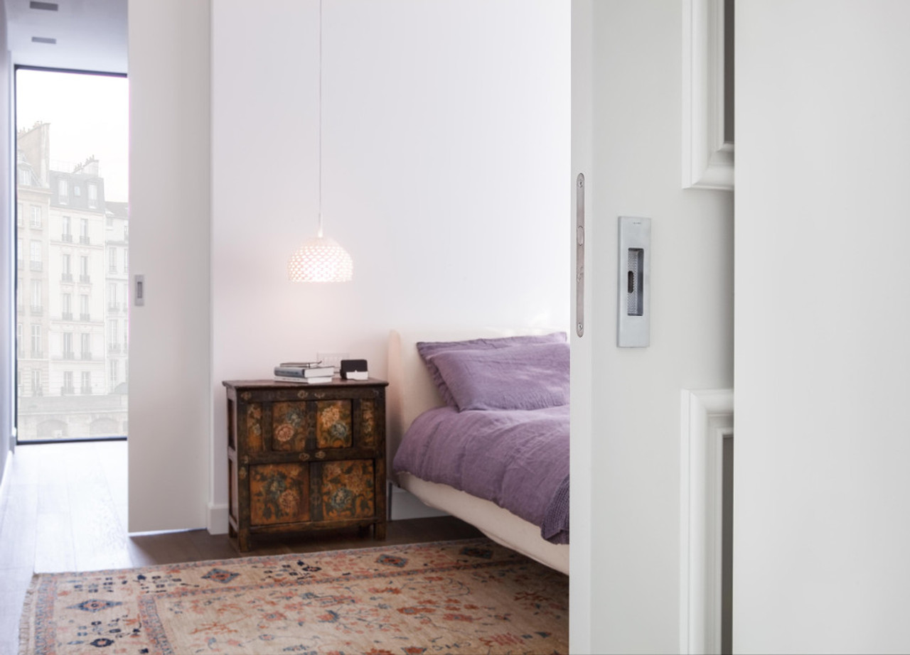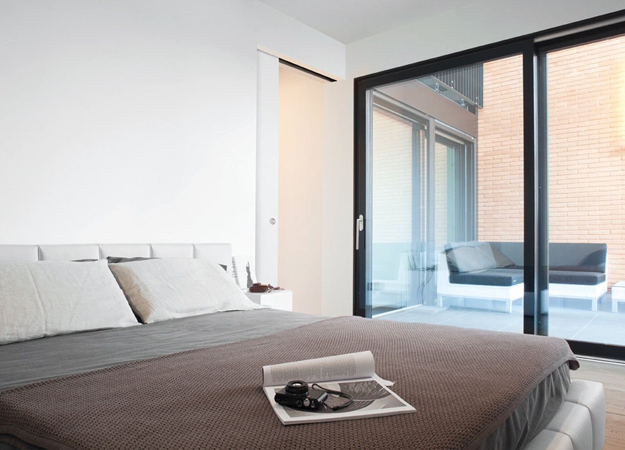 The Syntesis® Flush Pocket Door system provides you with a door that is there when you need it, and that is capable of blending, almost disappearing into its surroundings. When you open it, it disappears into a pocket in the wall. The perfect disappearing act!